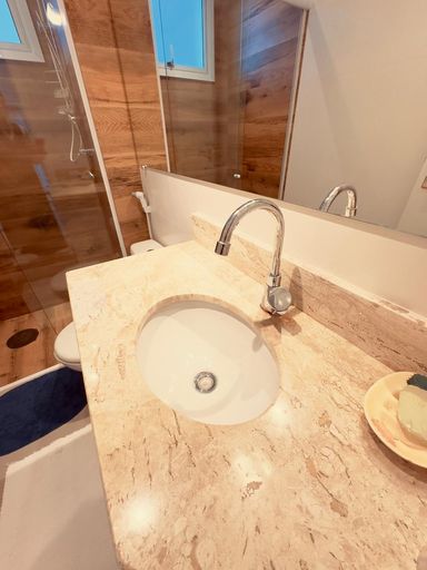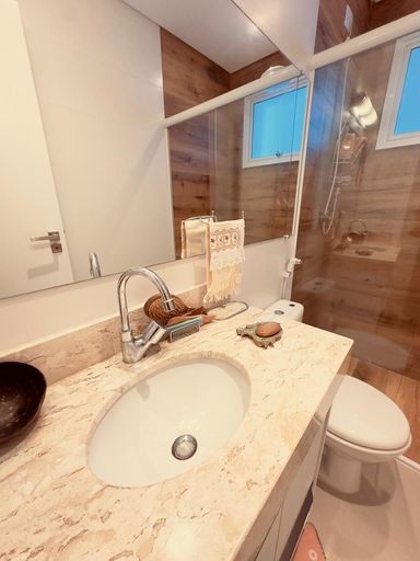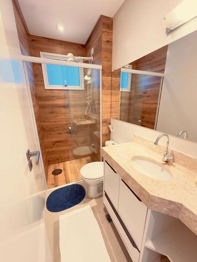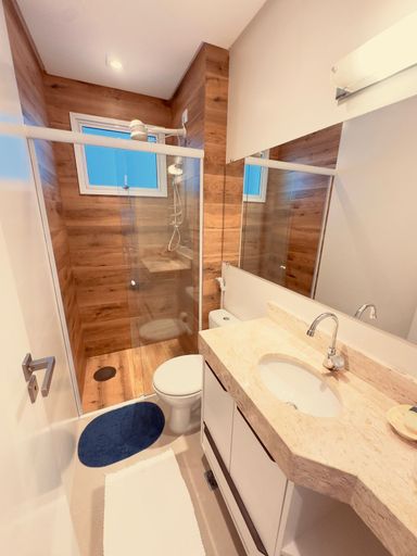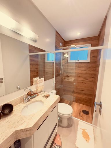 • Banheiro com box Blindex e armário planejado