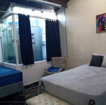 Térreo: ampla sala, 2 banheiros, 1 dormitório e pequeno quintal. Atualmente ocupado e locado para uso como academia.