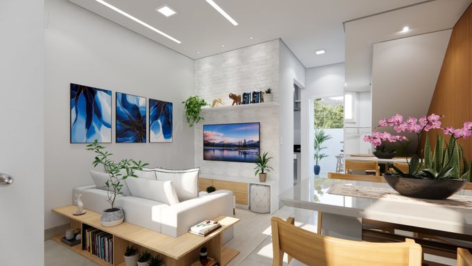 • Sala de estar e jantar integradas